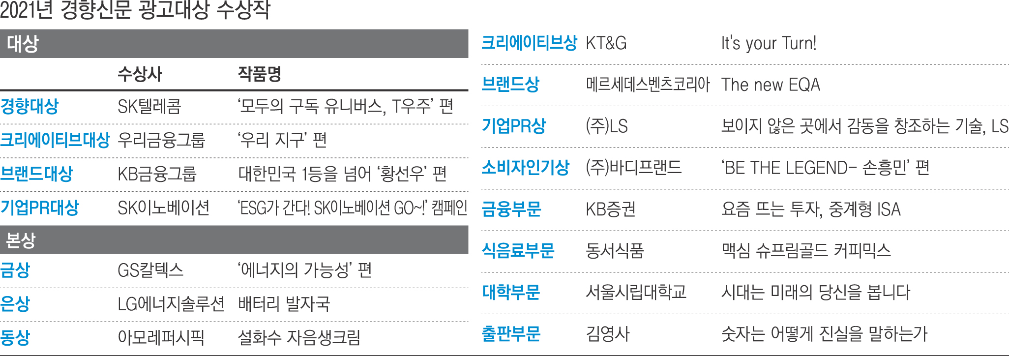 2021 경향신문 광고대상 수상작