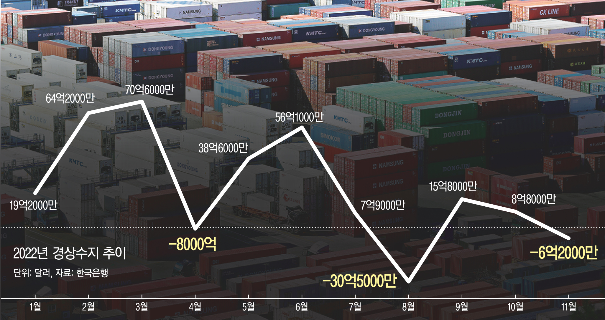반도체 등 수출부진의 여파로 지난해 11월 경상수지가 3개월 만에 다시 적자로 돌아섰다.