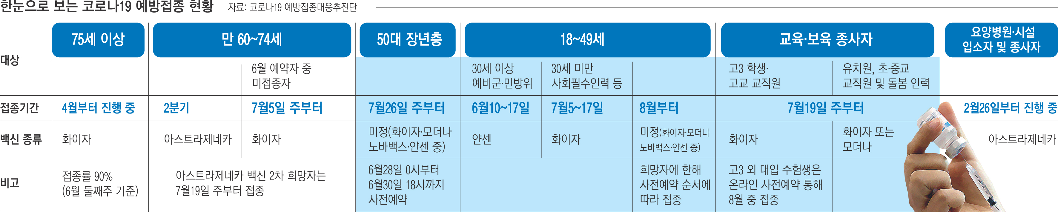 ‘9월까지 3600만명 코로나19 백신 1차 접종’을 향한 3분기 예방접종계획이 발표됐다.