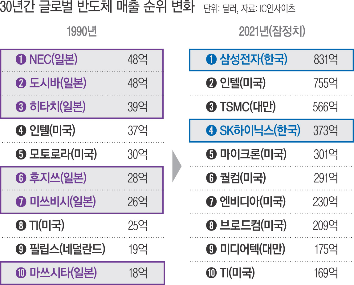 30년간 글로벌 반도체 순위