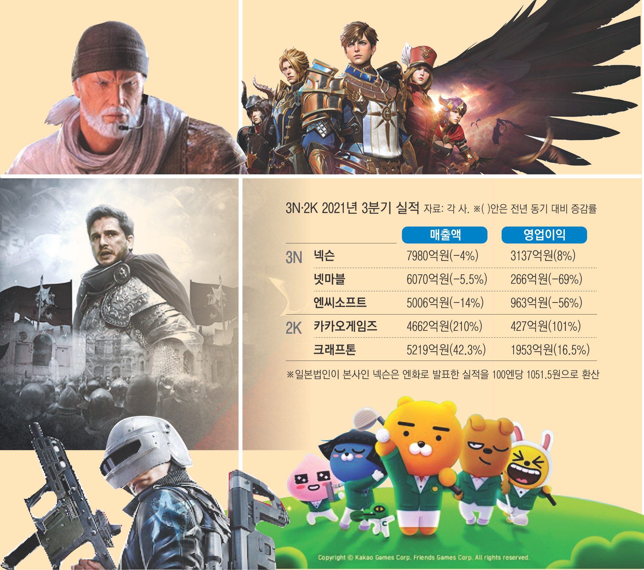 11일 엔씨소프트와 크래프톤을 끝으로 국내 주요 게임사들의 올해 3분기 실적 공개가 마무리됐다.