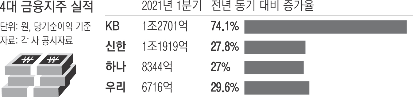 업계 1위를 다투는 KB금융그룹과 신한금융그룹은 나란히 1조원이 넘는 당기순이익을 올렸다.