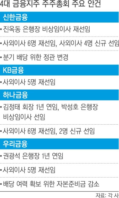 4대 금융지주 주주총회 안건