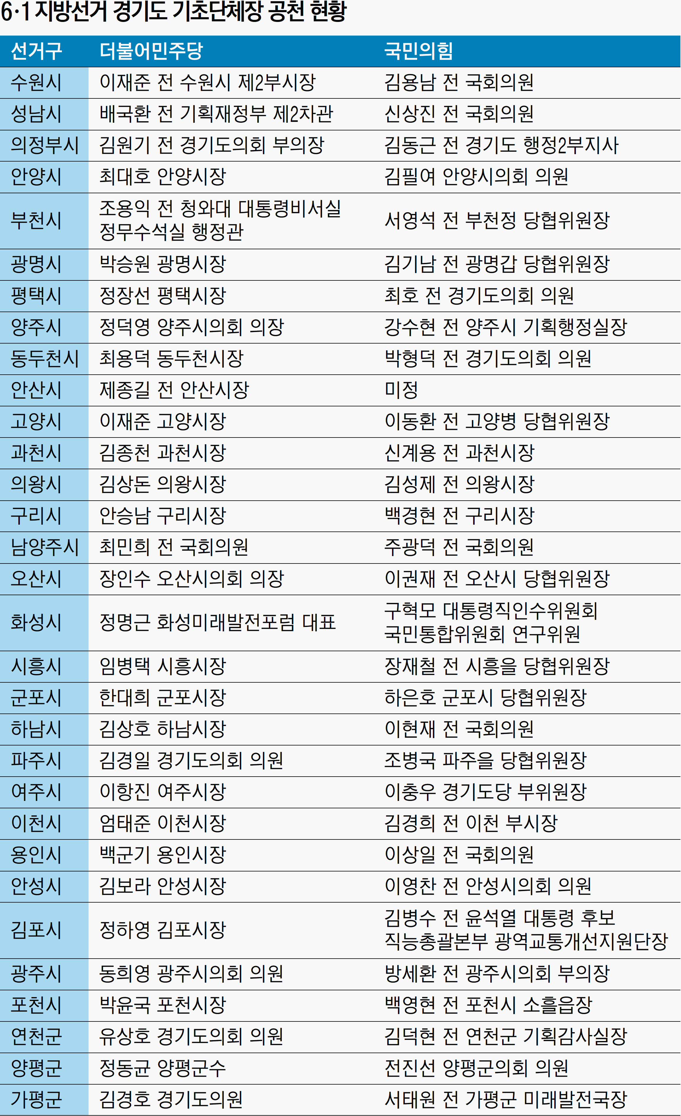 9일 경기지역 31개 기초 지자체장 선거 대진표의 윤곽이 드러났다.