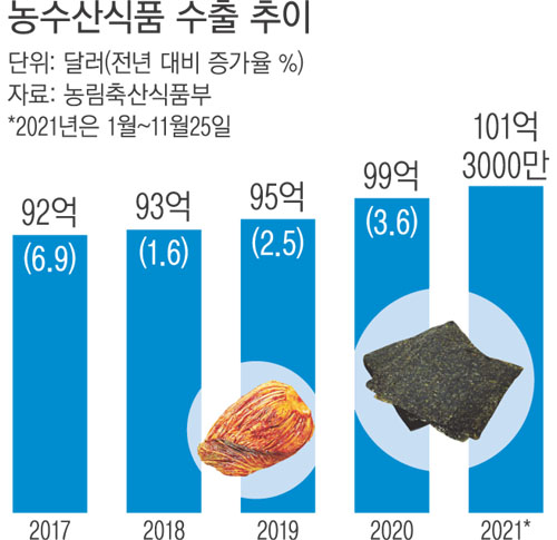 ‘K식품’ 수출 첫 100억달러 돌파…1위 ‘김’, 포도·딸기 ‘효자 등극’