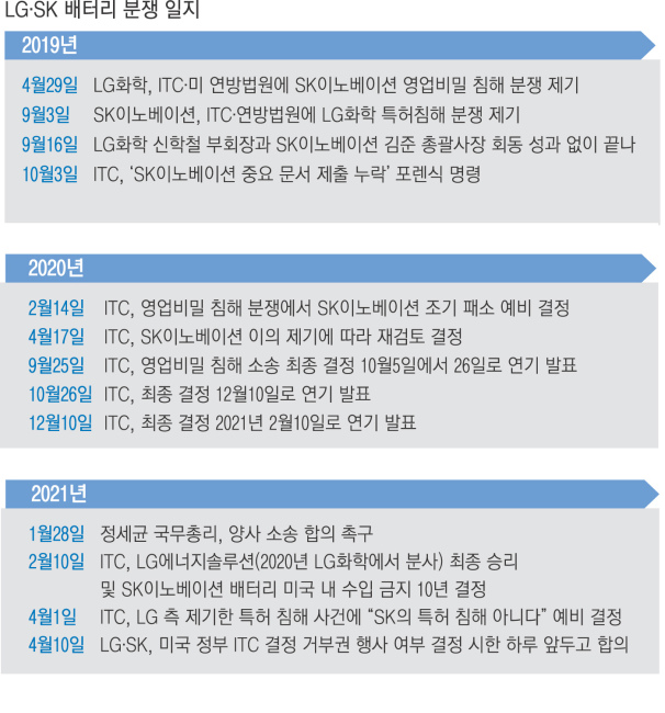 LG·SK 벼랑 끝 치닫다가…더 잃기 전에 공생 위한 ‘악수’ <2021년 4월 12일>