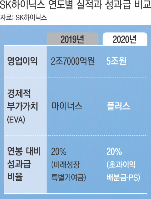 SK하이닉스가 지난해 실적을 토대로 지급된 성과급이 적다는 직원들의 반발로 몸살을 앓고 있다. 직원들은 지난해 영업이익이 2019년보다 2배 가까이 많아졌는데 성과급은 그대로라며 불만이다. 삼성전자 등 경쟁사로 이직하겠다는 얘기까지 나왔다. 최태원 SK그룹 회장이 자신의 연봉을 반납하고, 이석희 SK하이닉스 사장이 사내에 해명글을 올렸지만 논란은 쉽게 가라앉지 않고 있다.