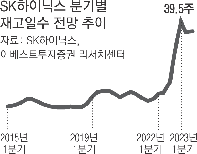 증권업계에서는 SK하이닉스의 재고 일수를 최대 39.5주로 추산하고 있다.