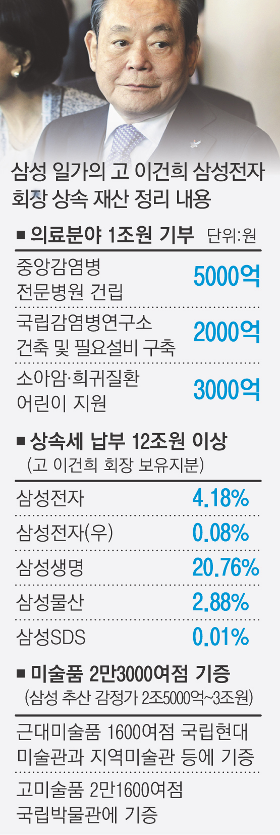 이건희 삼성전자 회장이 남긴 유산 중 1조원이 감염병과 어린이 치료를 위해 기부되면서 고인이 13년 전 한 사회환원 약속이 사후에 지켜지게 됐다.