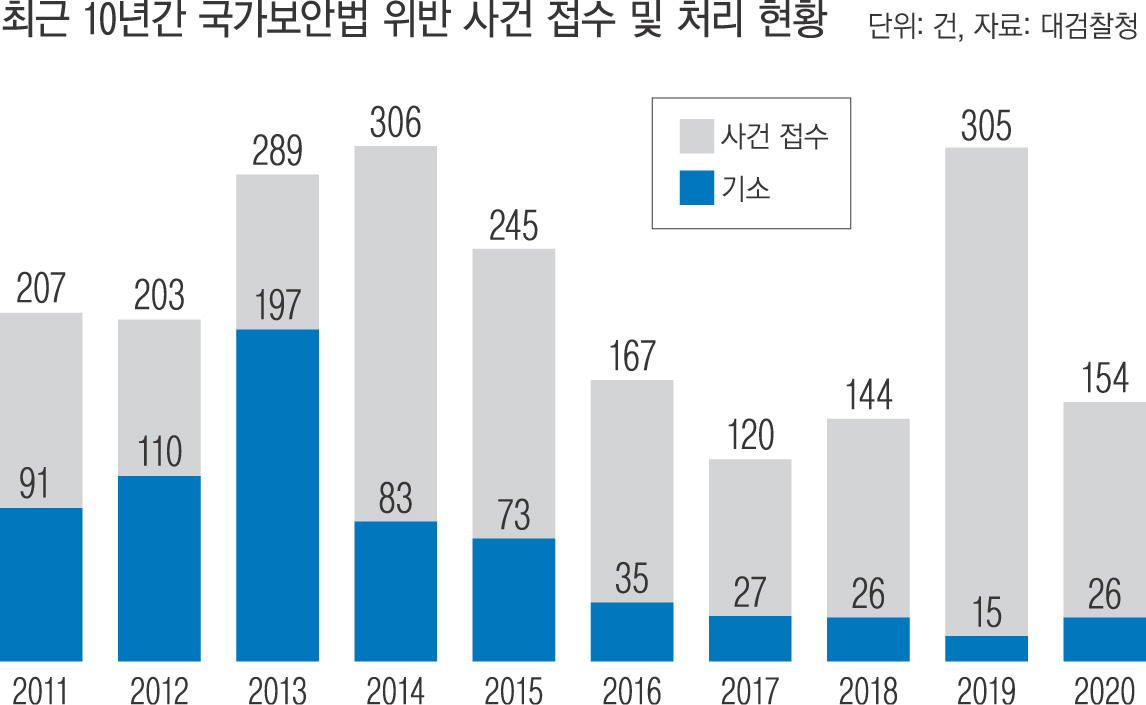 문재인 정부 들어 검찰의 보안법 위반 기소가 대폭 줄면서 보안법이 사문화됐다는 평가도 나오던 터였다.