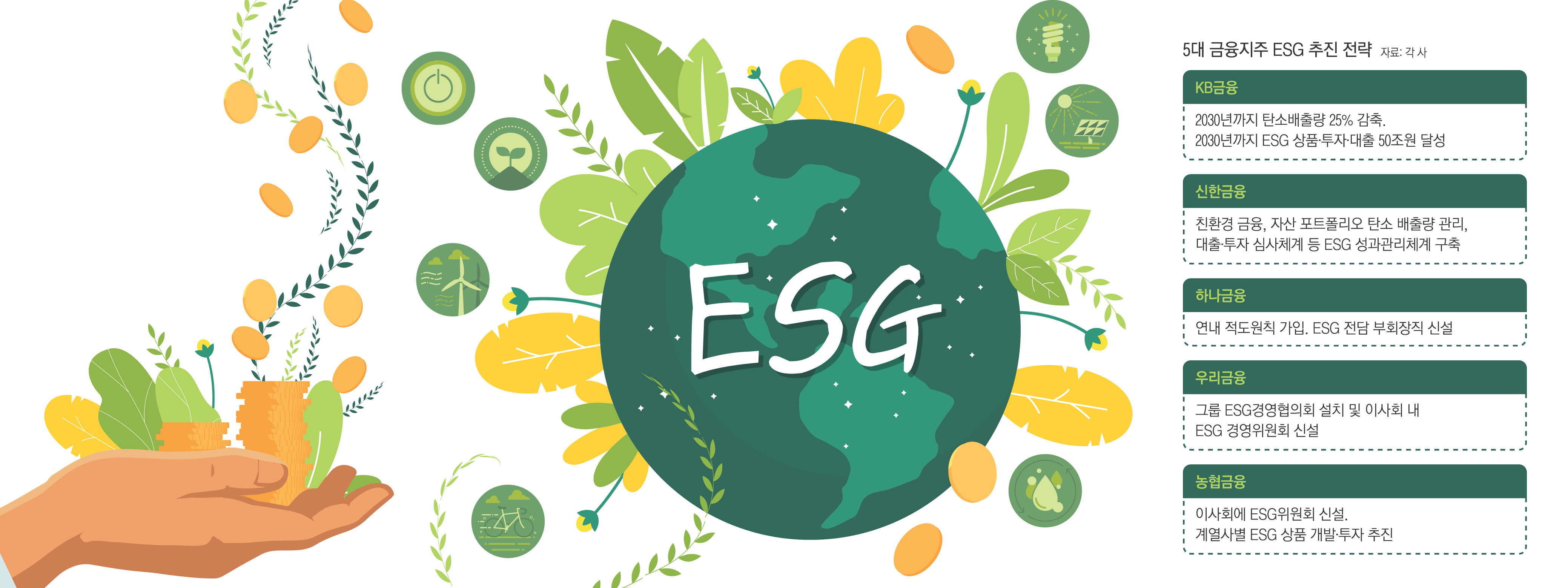 최우선 과제로 ESG 경영을 내세운 5대 금융지주는 ESG 채권 발행에 박차를 가하고 있다.