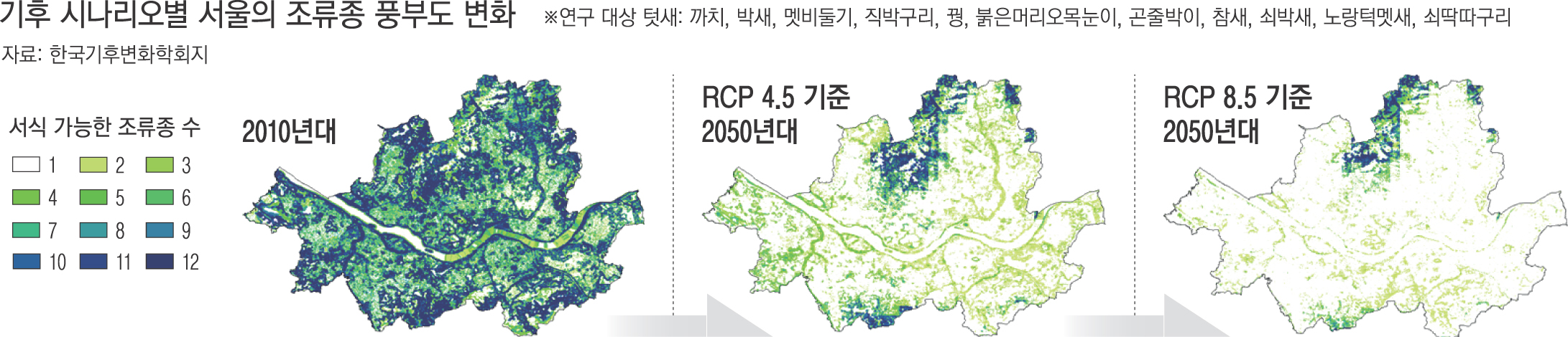심할 경우 서울 도심 85% 지역에서는 아예 텃새를 볼 수 없다는 예측도 나왔다.