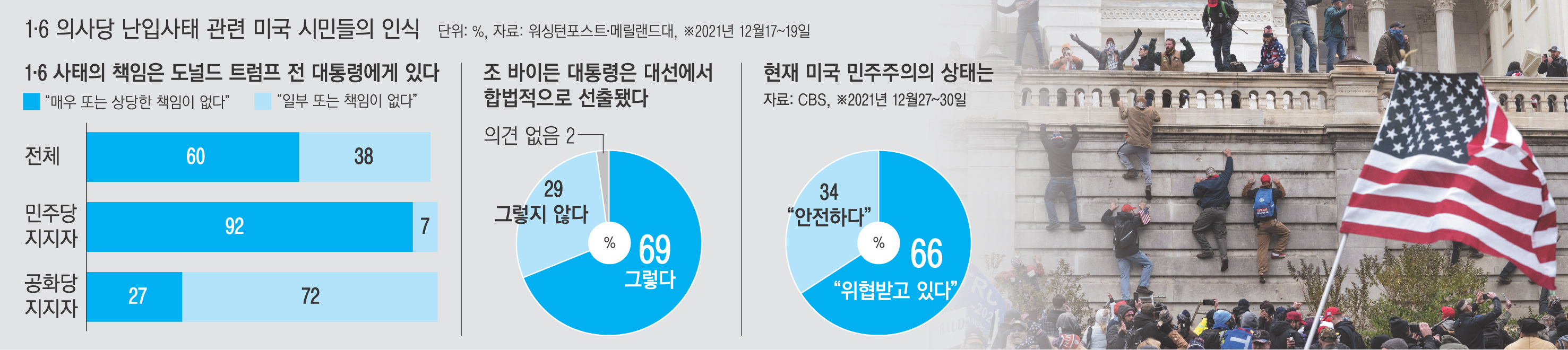 미국 민주주의의 심장부가 외적이 아닌 시민들에게 공격당한 1·6 의회 폭동 사태는 미국의 위상과 자존심을 땅에 떨어뜨렸다.