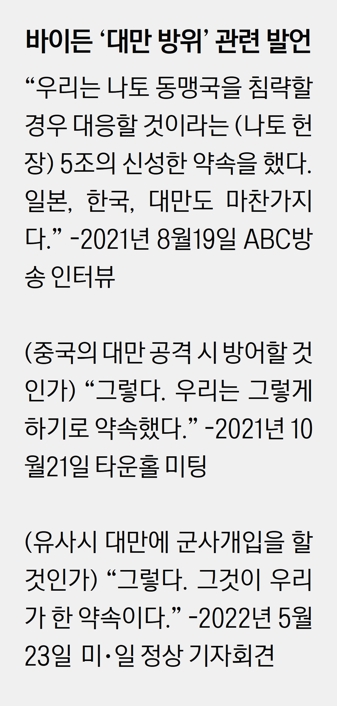 바이든 “대만 방어 파병 가능”…단순 실언이냐, 중국 떠보기냐