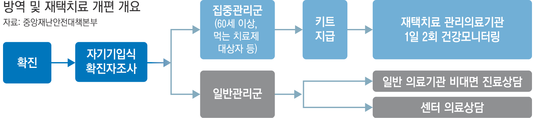 중앙재난안전대책본부는 하루 2회 재택치료 환자에 대한 건강 모니터링을 60세 이상, 50대 기저질환자, 면역저하자 등 ‘집중관리군’에 한정해 시행하기로 했다고 7일 밝혔다.