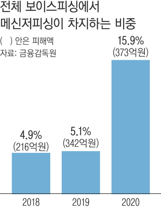 메신저피싱은 메신저로 지인을 사칭해 돈이나 개인정보를 빼가는 ‘보이스피싱’의 일종이다.