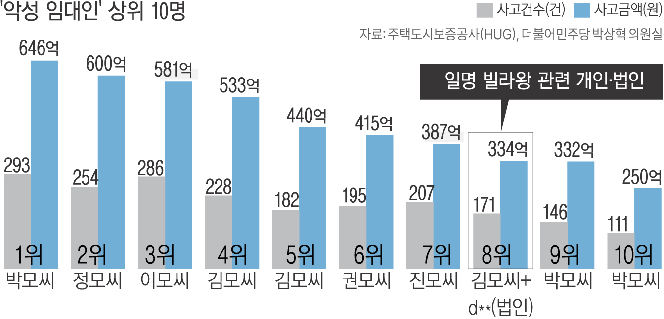최근 숨진 ‘빌라왕’ 김모씨보다 더 많은 전세보증금 사고를 일으킨 악성 임대인이 곳곳에 있는 것으로 나타났다.