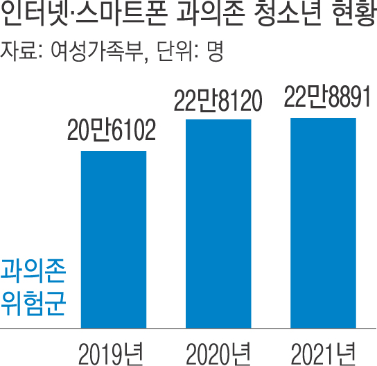 코로나19 이후 집 안에 머무는 시간과 온라인 수업 빈도가 늘면서 인터넷·스마트폰에 과도하게 의존하는 청소년도 증가한 것으로 조사됐다.