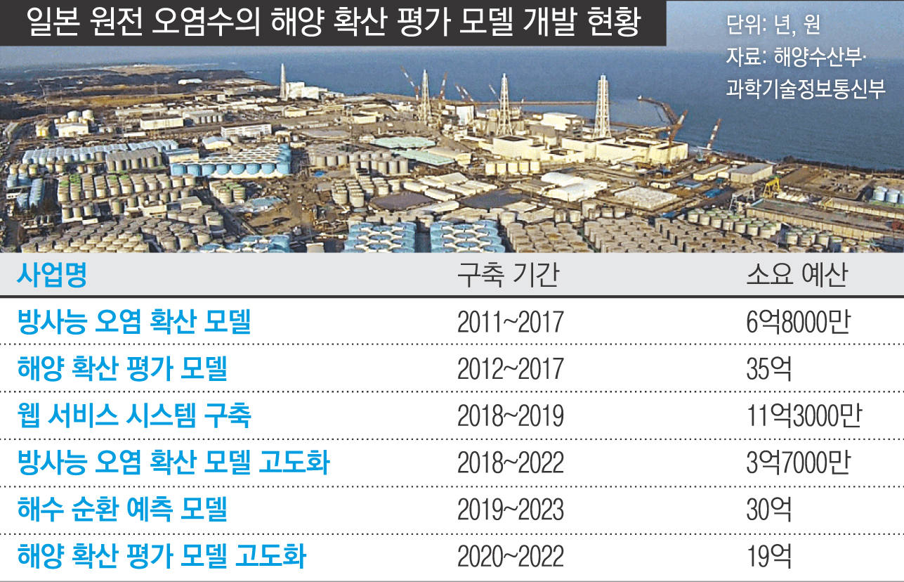 일본 후쿠시마 원전 오염수가 바다에 방출되면 국내에 어떤 영향을 미칠지 예측하기 위해 정부가 100억원 넘게 예산을 들여 평가 모델을 만들었지만, 정작 시뮬레이션(모의실험)을 하지 않고 있어 논란이 일고 있다.