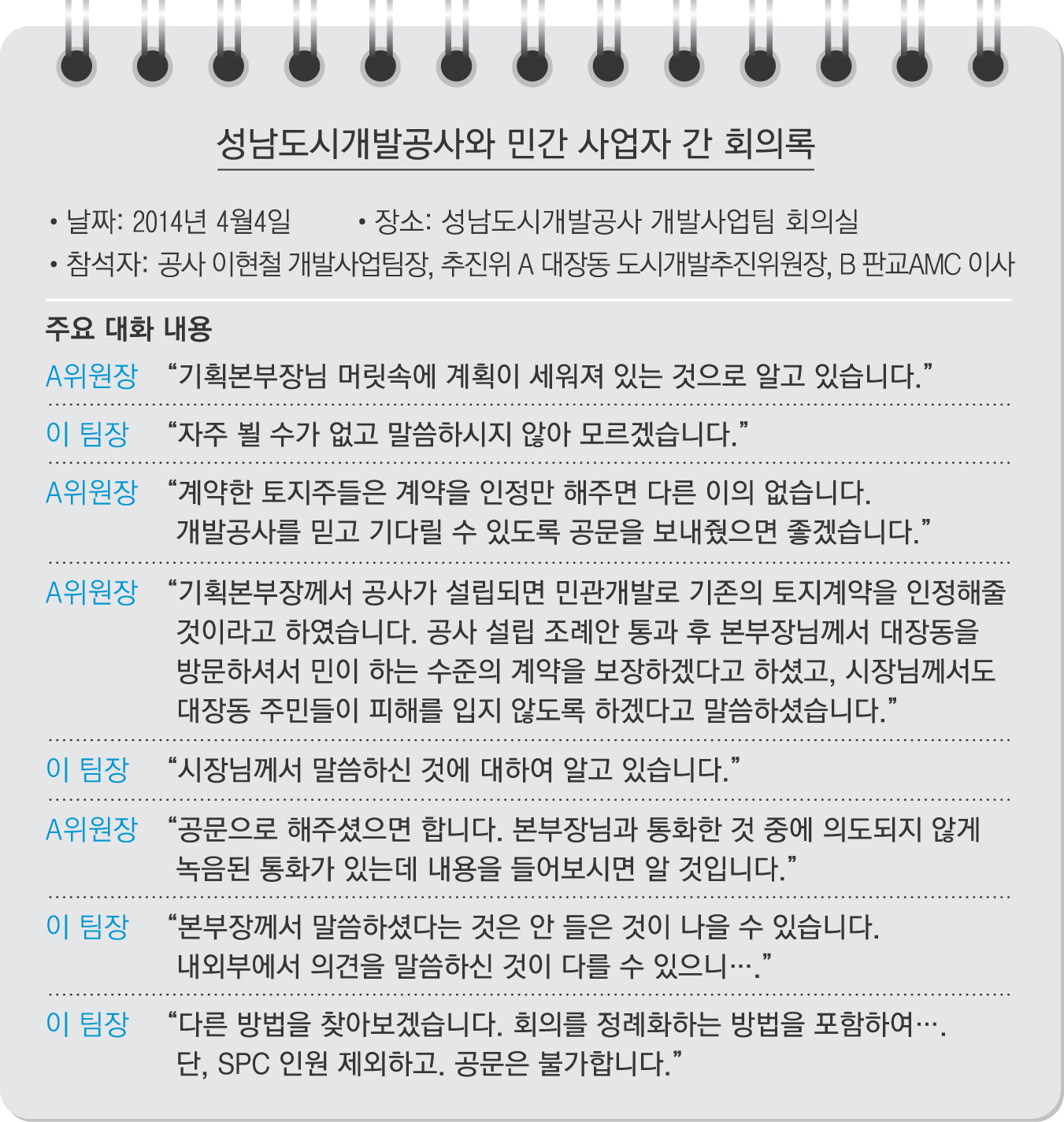 2009년부터 대장동 땅을 사들인 남욱 변호사, 정영학 회계사 등의 우선권을 인정하겠다는 얘기로, 유 전 본부장이 일찍이 대장동 세력을 사업자로 내정한 정황이다.