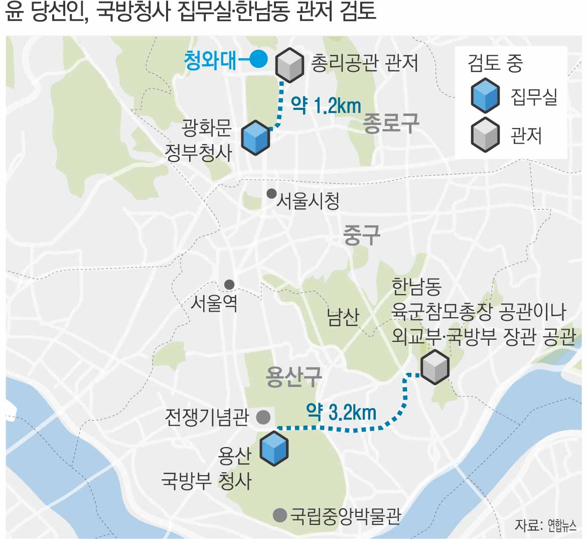 대통령직인수위원회가 15일 윤석열 대통령 당선인의 취임 후 집무실을 서울 용산 국방부 청사에 두는 방안을 검토 중인 것으로 확인됐다.