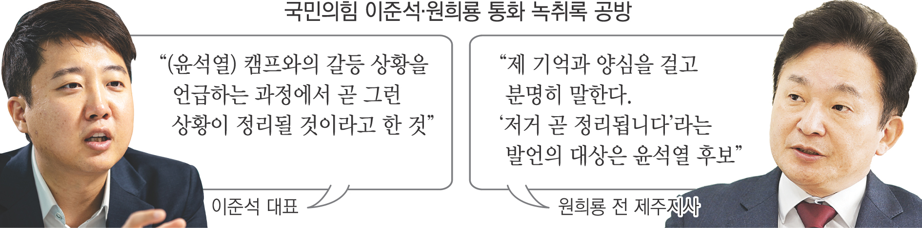 이준석 대표의 통화 녹취록 파문은 ‘저거’의 지칭 대상을 둘러싼 진실게임으로 확산했다.