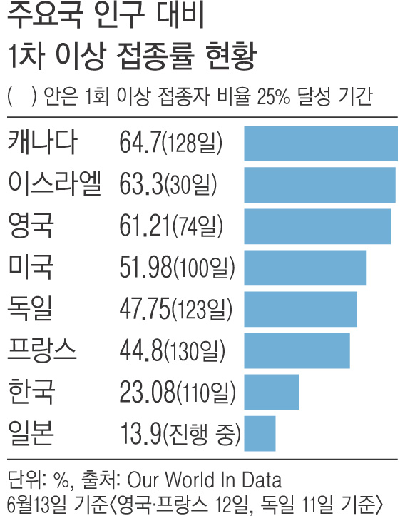 109일 만에 ‘1차 접종 25%’…프랑스·독일보다 빨랐다