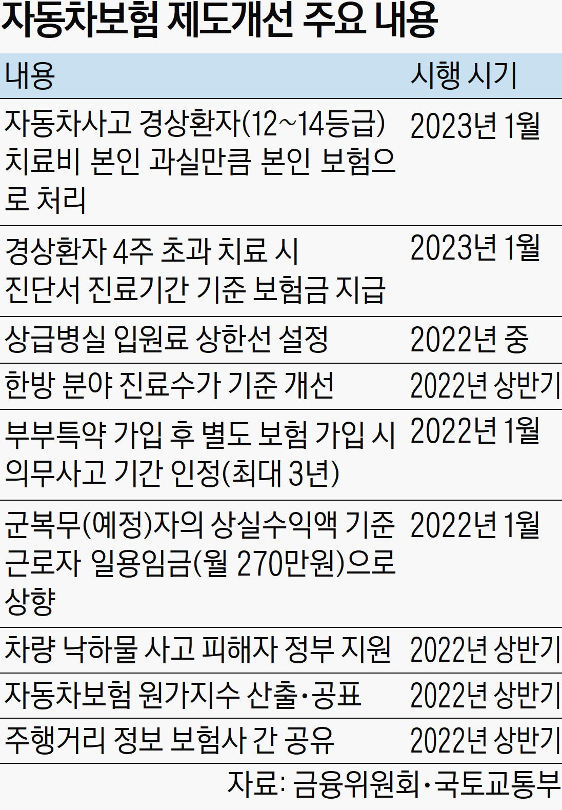 자동차보험 제도개선 내용