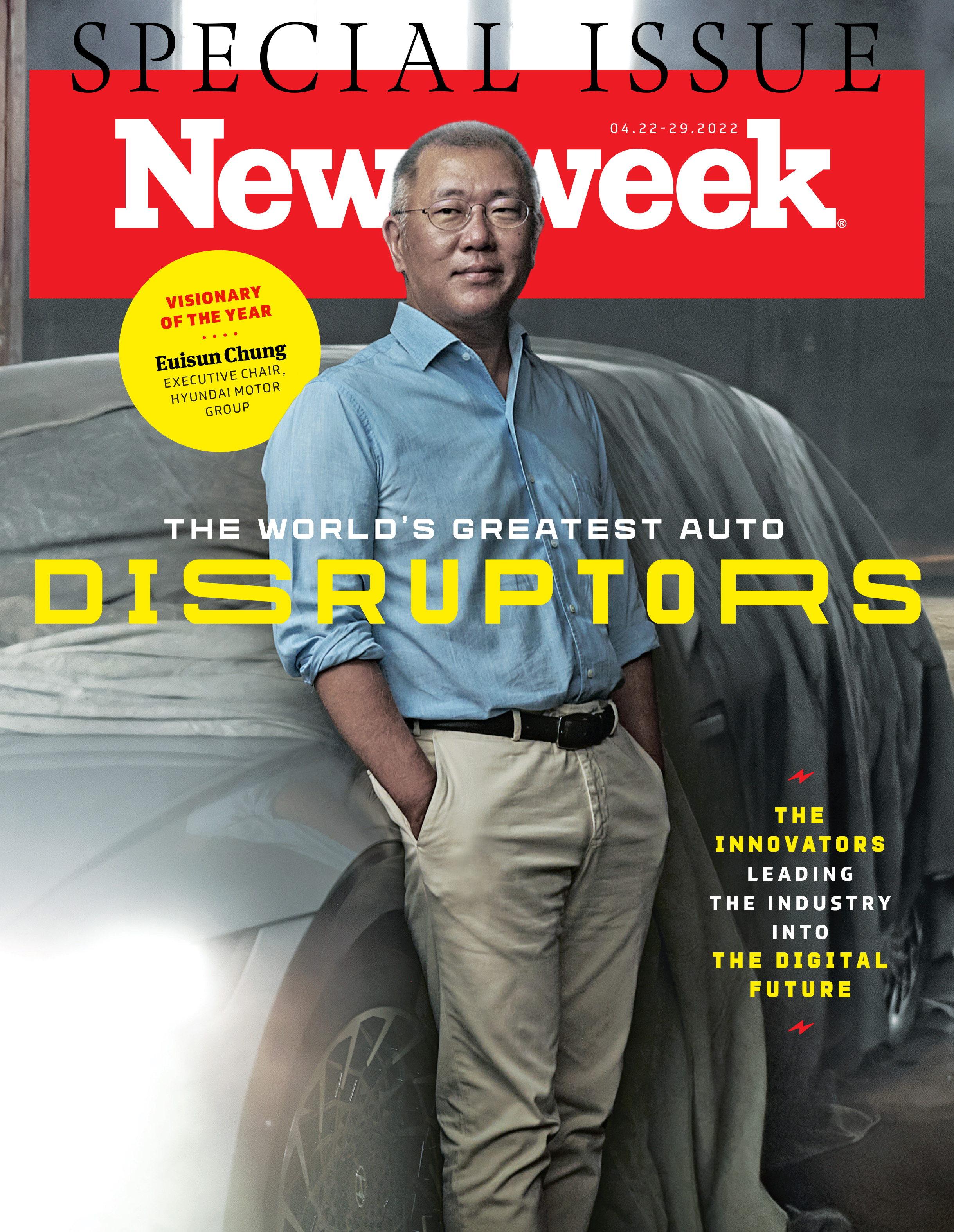 뉴스위크는 12일(현지시간) 미국 뉴욕 세계무역센터에서 열린 ‘2022 세계 자동차 산업의 위대한 파괴적 혁신가들’ 시상식에서 정 회장에게 ‘올해의 선지자(Visionary of the Year)’ 상을 수여했다.