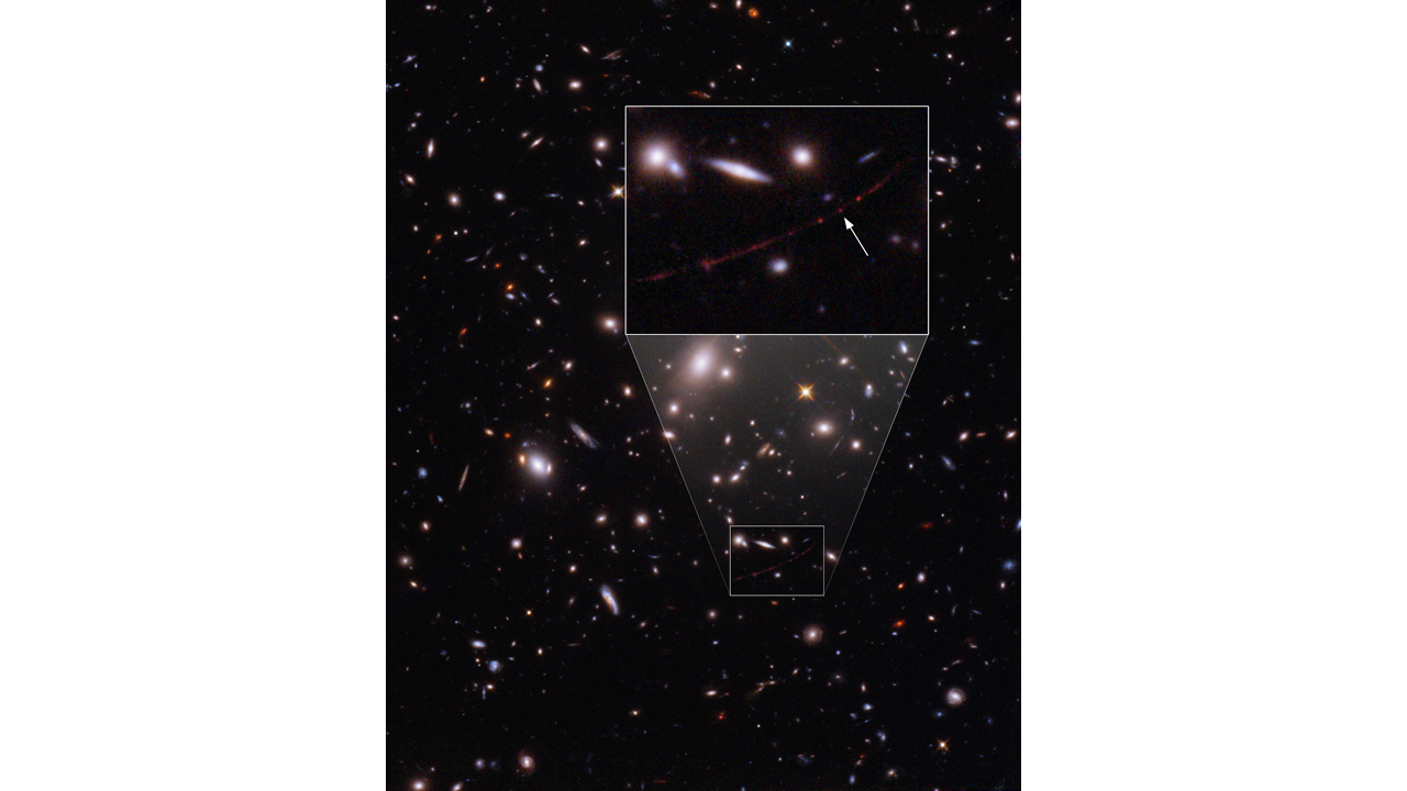 지금까지 우주에서 관측된 것 가운데 가장 멀리 떨어진 별(위 사진)이 허블 우주망원경(아래 사진)에 포착됐다.