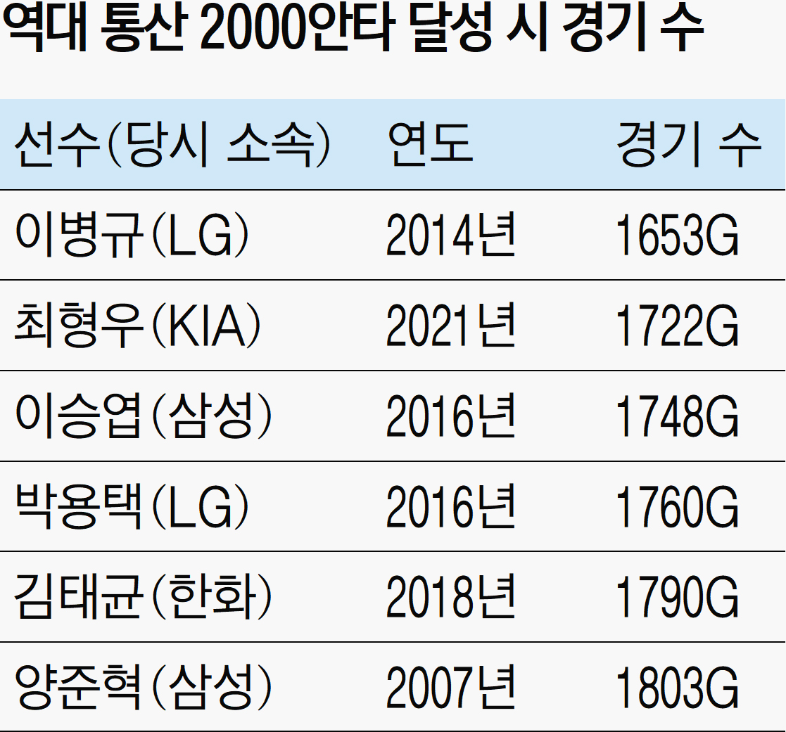 2021년 통산 2000안타 고지를 밟았다.