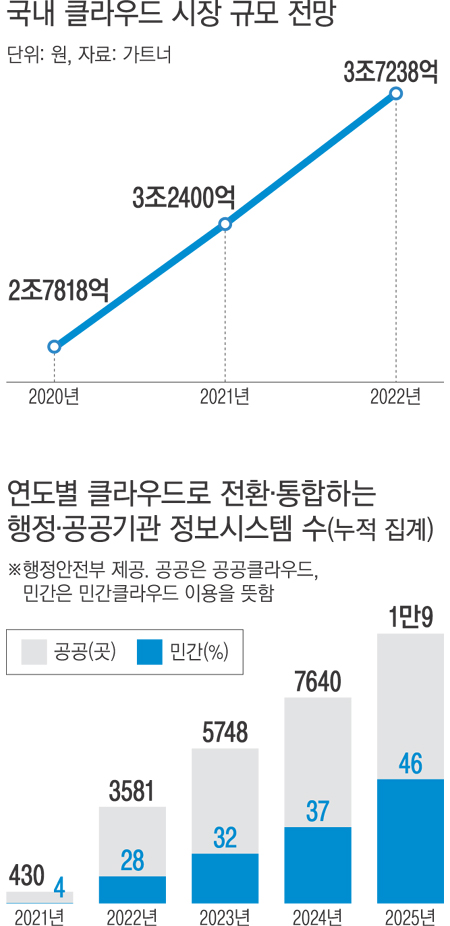 국내 클라우드 시장이 코로나19로 비대면 활동이 일상화되면서 빠르게 성장하고 있다. 민간 영역은 아마존(AWS·아마존웹서비스)과 마이크로소프트(MS 애저), 구글(구글 클라우드) 등 미국 메이저들이 선점하고 있지만, 공공·금융·의료 영역은 국내 업체들이 ‘맞춤형 서비스’로 공략하고 있다.