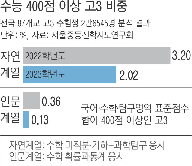 지난달 실시된 2023학년도 대학수학능력시험에서도 다양한 지표로 확인된 ‘재수생·이과 강세’가