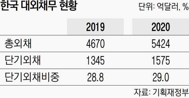 작년 말 기준 대외채무 5424억달러…코로나19 영향, 755억달러 늘어