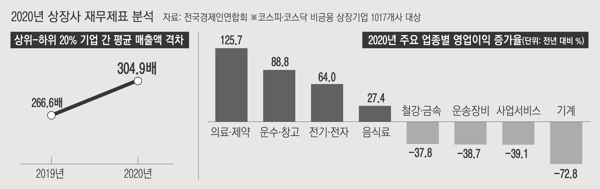 코로나19가 휩쓴 지난해 국내 기업들의 실적이 확연한 양극화 양상을 보인 것으로 나타났다.