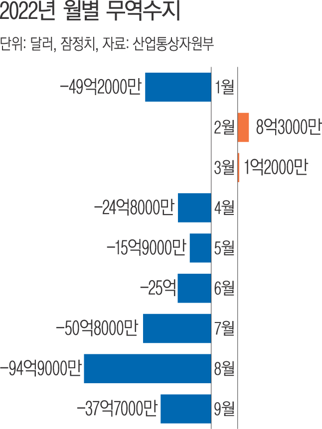 1997년 국제통화기금(IMF) 외환위기 이후 처음으로 6개월 연속 무역수지 적자를 기록했다.