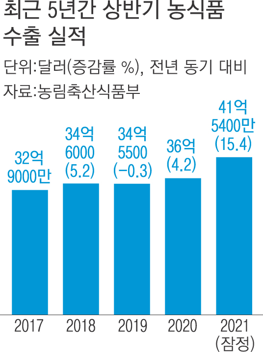 올해 상반기 인삼과 김치 등 농식품 수출이 역대 최고를 기록했다.