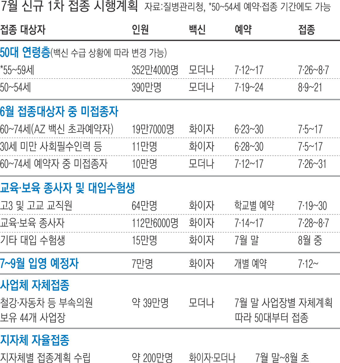 50대, 26일부터 모더나 백신 접종…고3·고교 교사, 19일부터 ‘화이자’