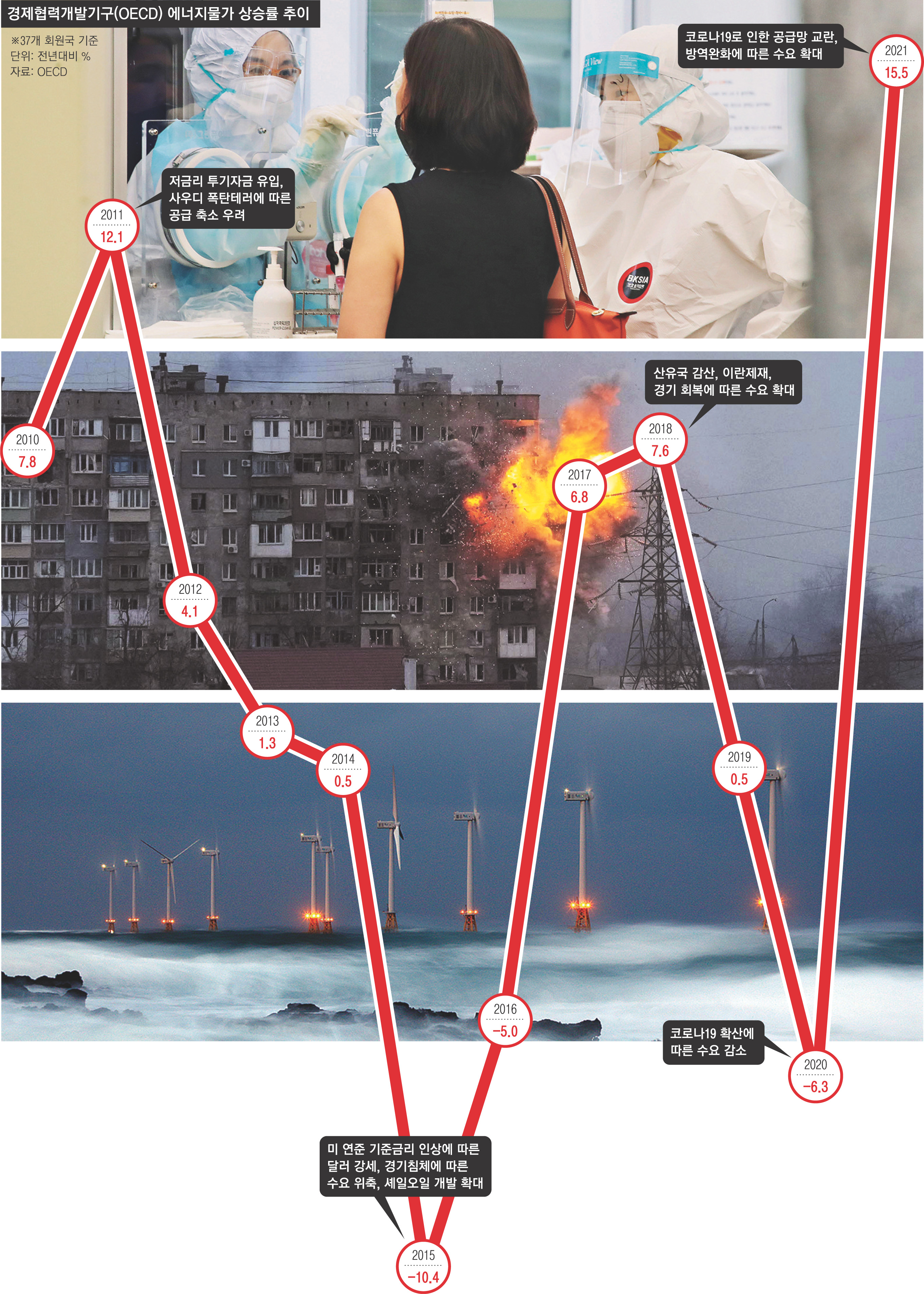 경제협력개발기구(OECD) 통계를 보면 37개 회원국 평균 에너지물가 상승률은 지난해에 15.5% 상승했다.